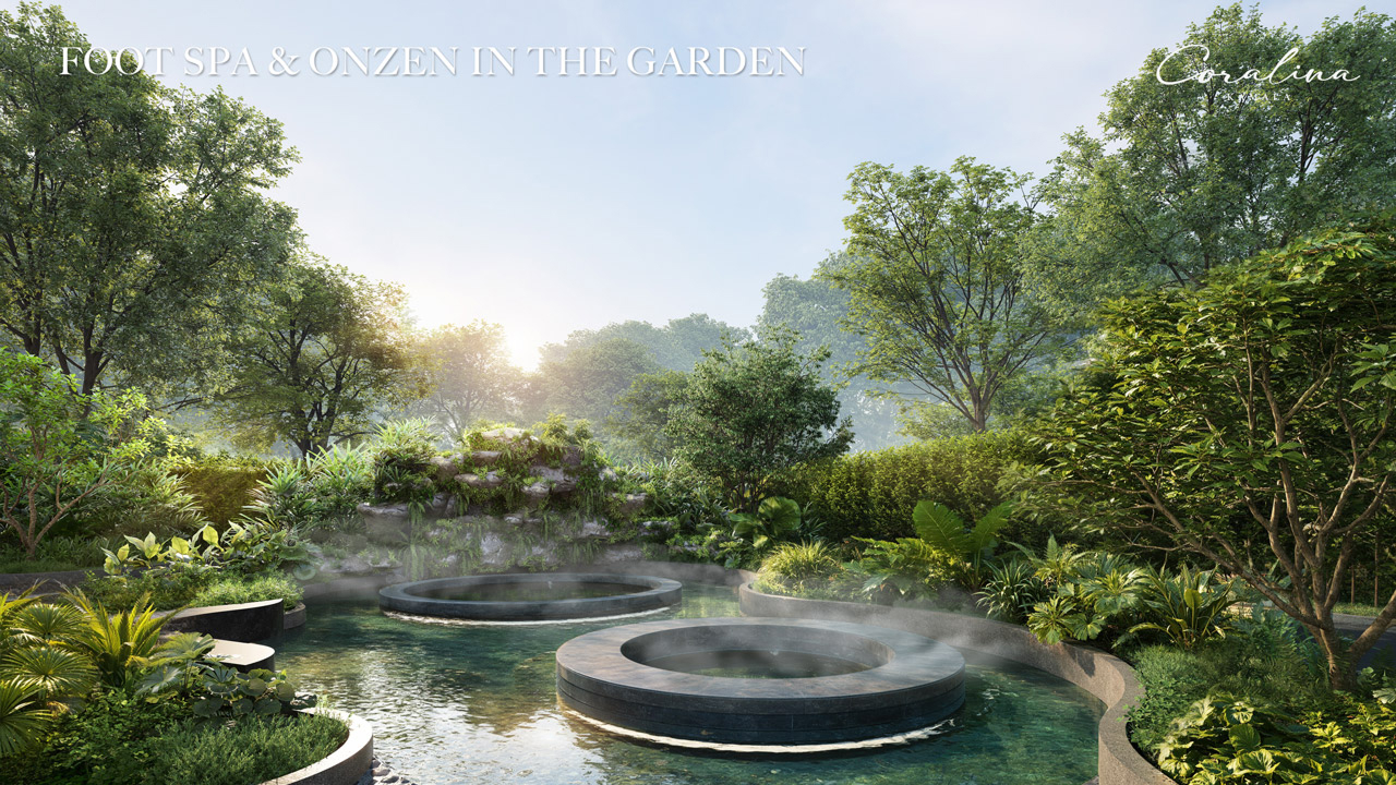 • Facilities: coworking spaces, library, fitness, yoga, children’s zones, onsen, jacuzzi, hydrotherapy, community mall